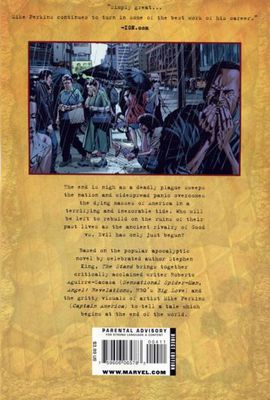 Written by ROBERTO AGUIRRE-SACASA Penciled by MIKE PERKINS Cover by LEE BERMEJO Variant Cover by MIKE PERKINS Sketch Variant by LEE BERMEJO The first volume of Marvel's adaptation of the Stephen King horror epic draws to its conclusion! For Larry Underwood, Nick Andros, and Frannie Goldsmith, the deadly superflu has immediate--and devastating--consequences, striking down people near and dear to their hearts. Meanwhile, outlaw Lloyd Henreid gets some grim news from his attorney and General Starkey is relieved of his duties--in the most definitive way possible. And somewhere far away, but getting closer, the Walkin' Dude is making his presence known... 32 PGS./Carstock Cover/Parental Advisory ?$3.99 ?2008 Stephen King. All rights reserved. Published by arrangement with The Doubleday Broadway Publishing Group, a division of Random House, Inc. This comic series is produced under license from The Doubleday Broadway Publishing Group and Stephen King.
