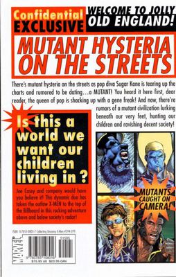cover by ian churchill ? THE SCOOP: Collecting UNCANNY X-MEN's red-hot relaunch! ? THE STORY: A new era dawns for the Children of the Atom - with Joe Casey (Adventures of Superman) and Ian Churchill (WOLVERINE) at the controls! Get set for a new lineup (did someone say Chamber?), new costumes (leather, baby), new villains (Mr. Clean is a dirty man)... and one shocking kiss (between Jean Grey and Wolverine)! Everyone's buzzing about the X-Men revamp - now see what all the noise is about! ? THE FORMAT: 160-page trade paperback.